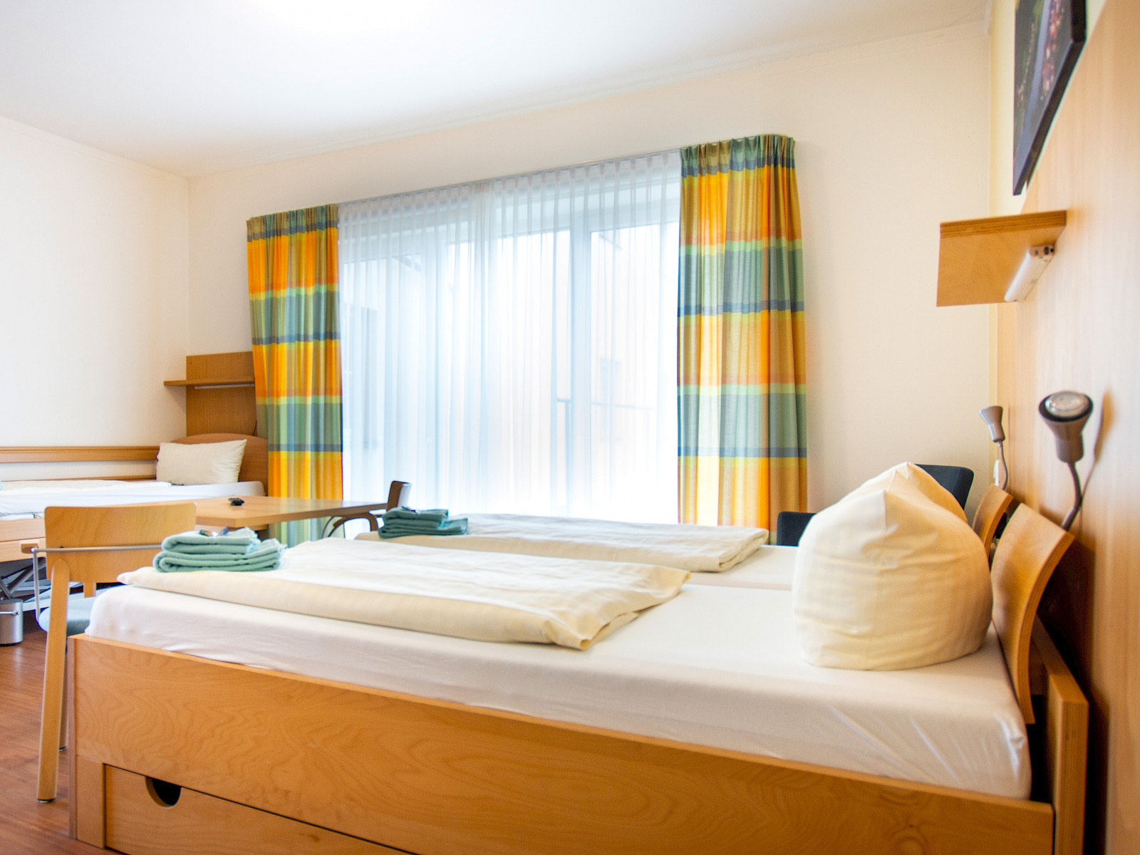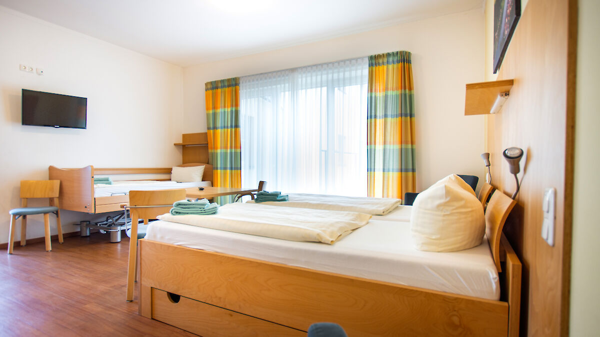 - 2 Dreibettzimmer, jeweils mit einem Pflegebett und Kühlschrank