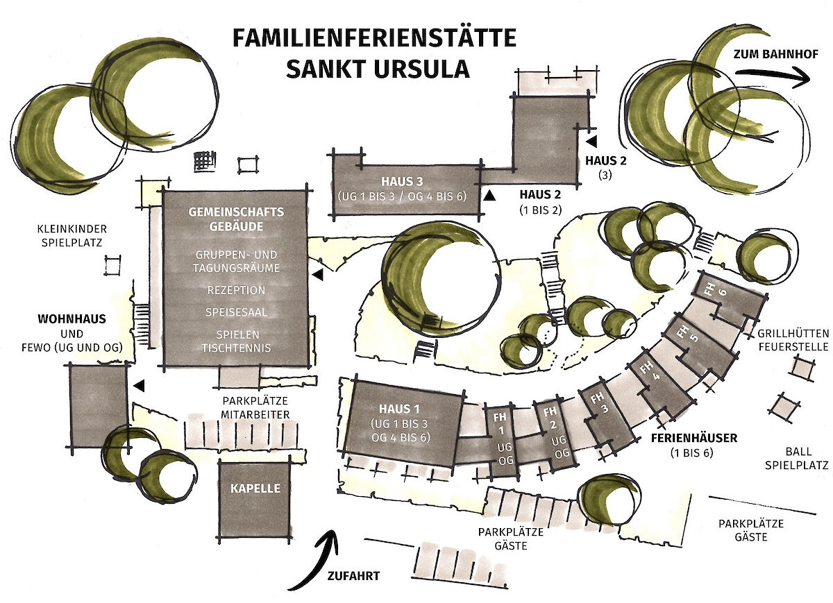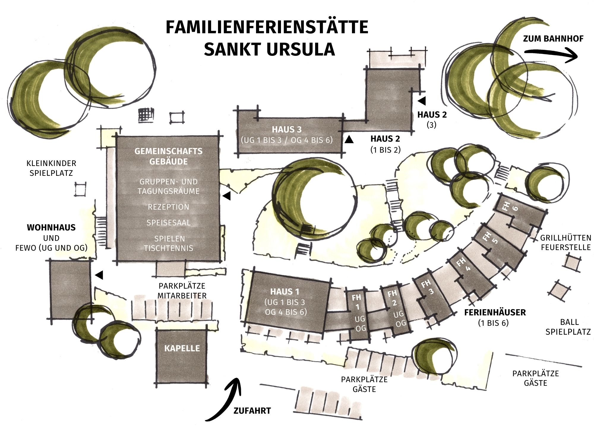 Wohnhäuser mit Ferienwohnung, Gruppenhäuser mit Zweibettzimmern und Mehrbettzimmern, Ferienhäuser mit Elternzimmern und Kinderzimmern.