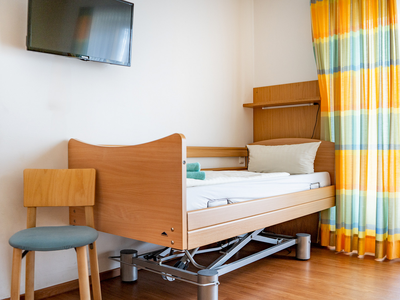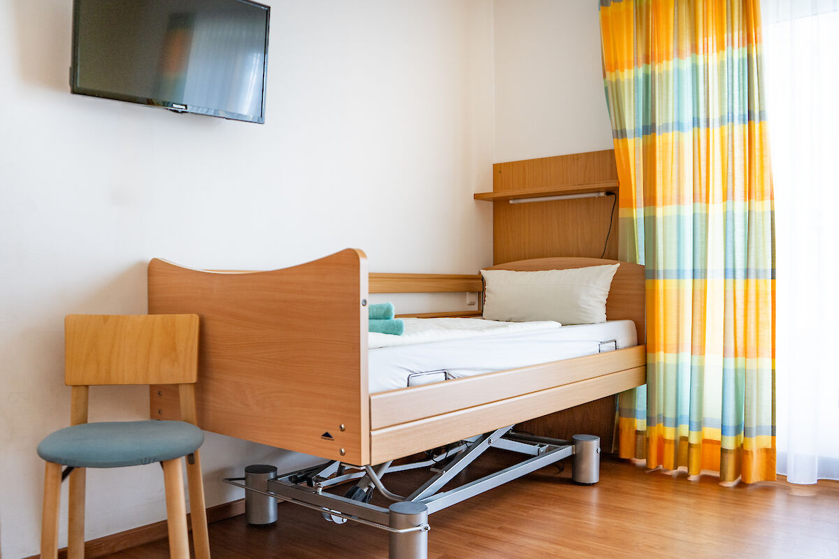 - in zwei Zimmern ist je ein Pflegebett vorhanden