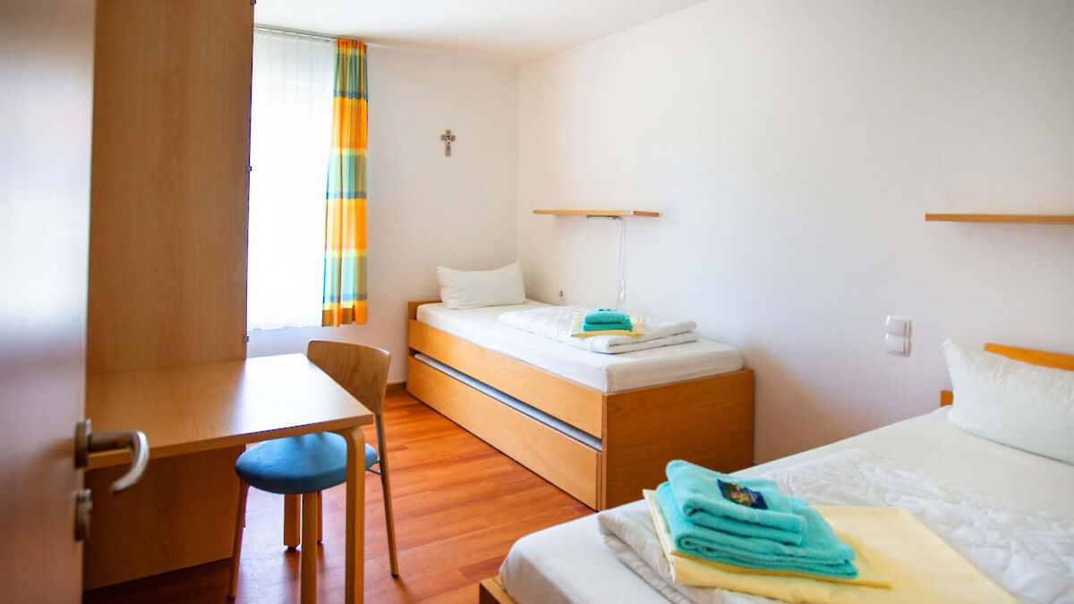- pro Etage 1 Doppelzimmer, 1 Zweibettzimmer und 1 Bad mit Dusche und Toilette