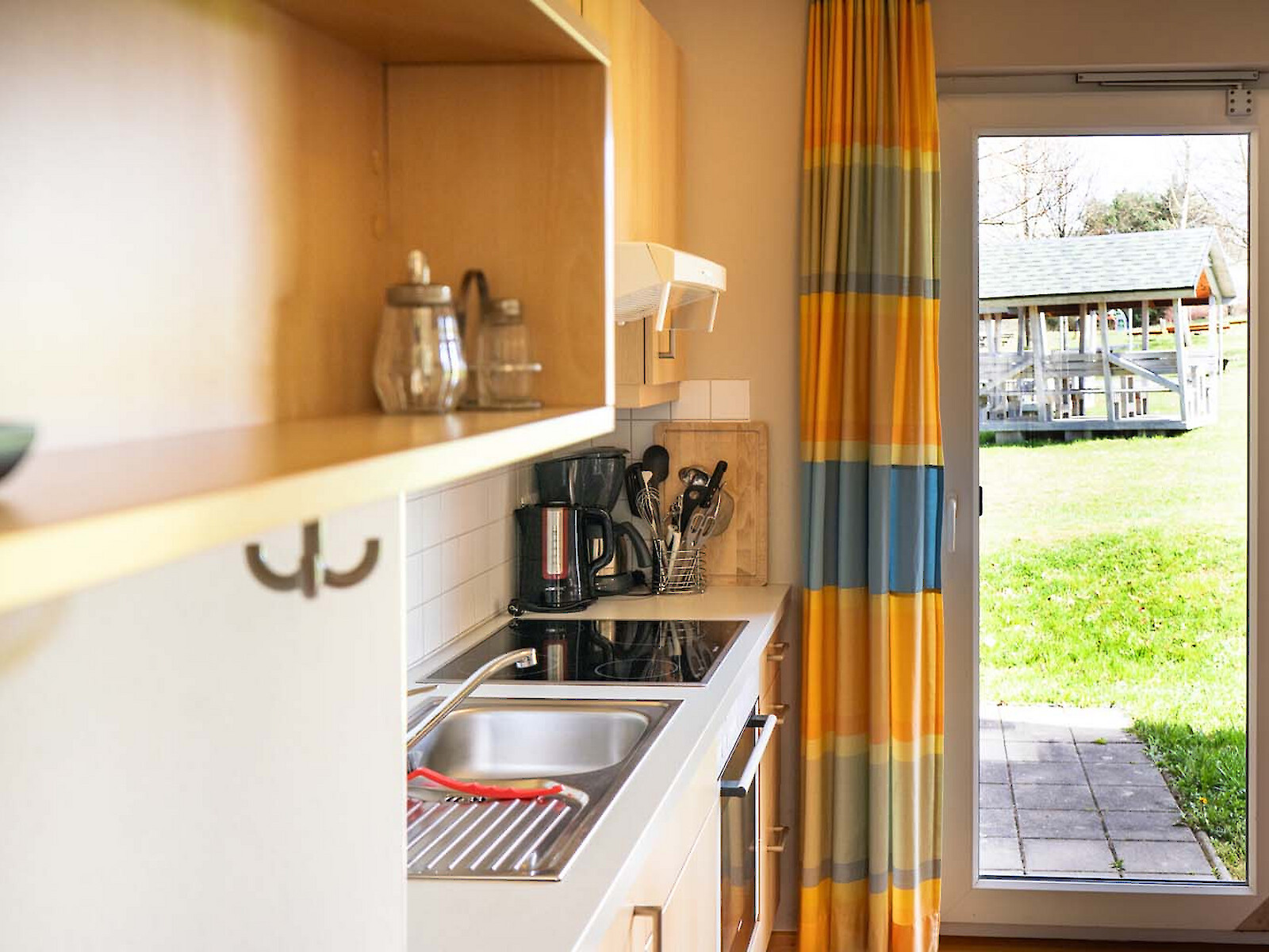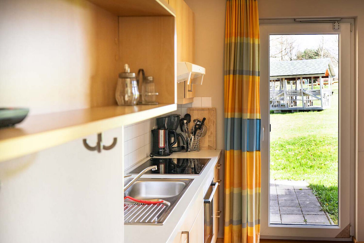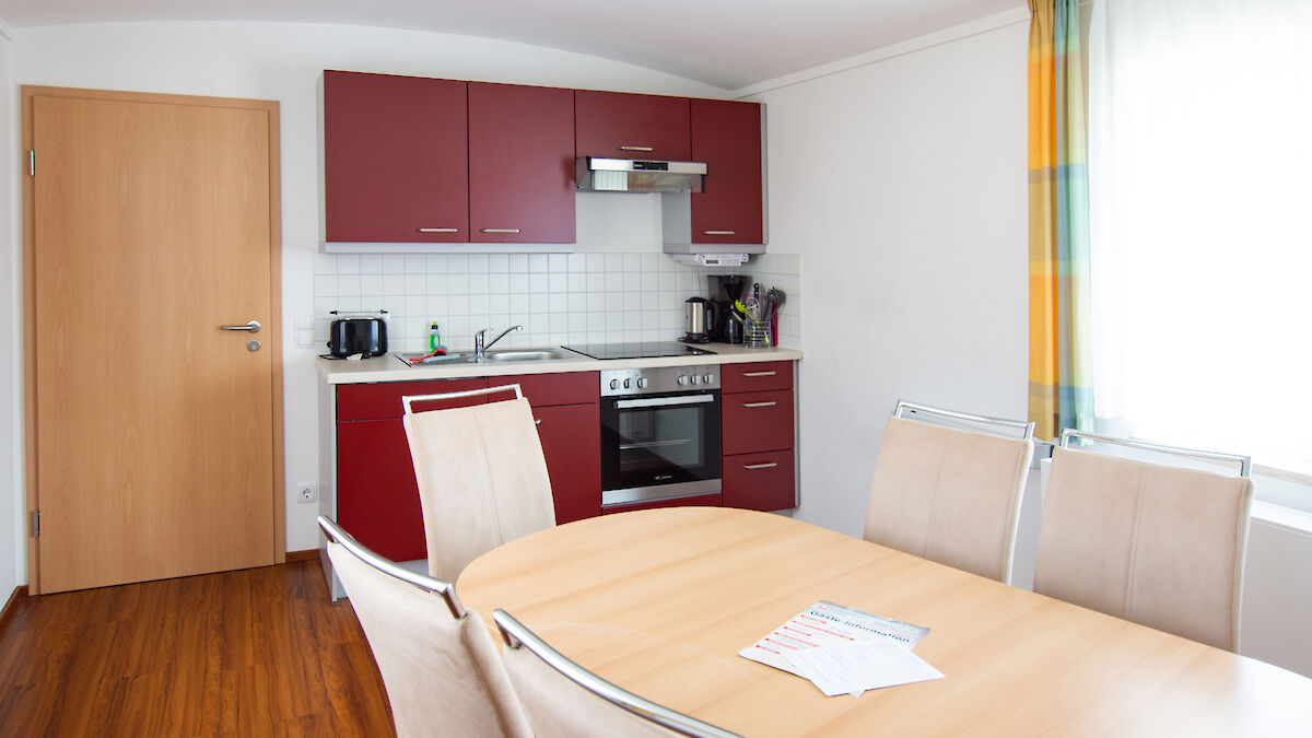 - Küchenzeile mit Herd, Backofen und Kühlschrank