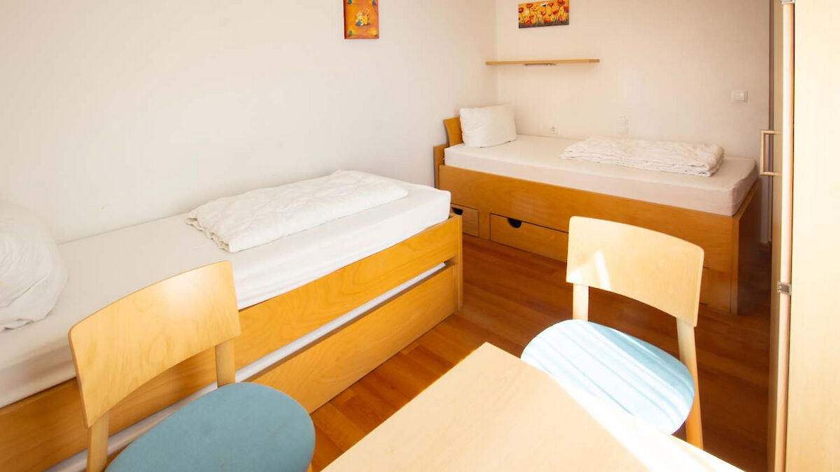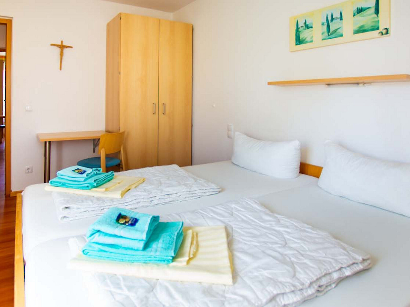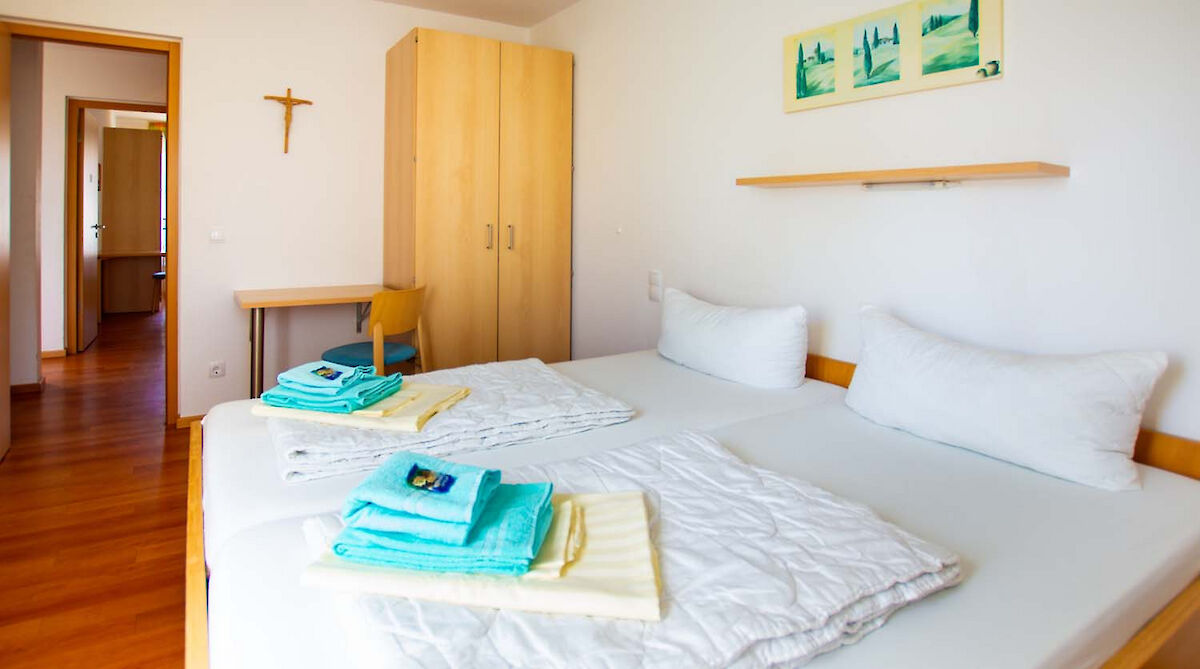 - 1 Doppelzimmer, 1 Zweibettzimmer und 1 Bad mit Dusche und Toilette