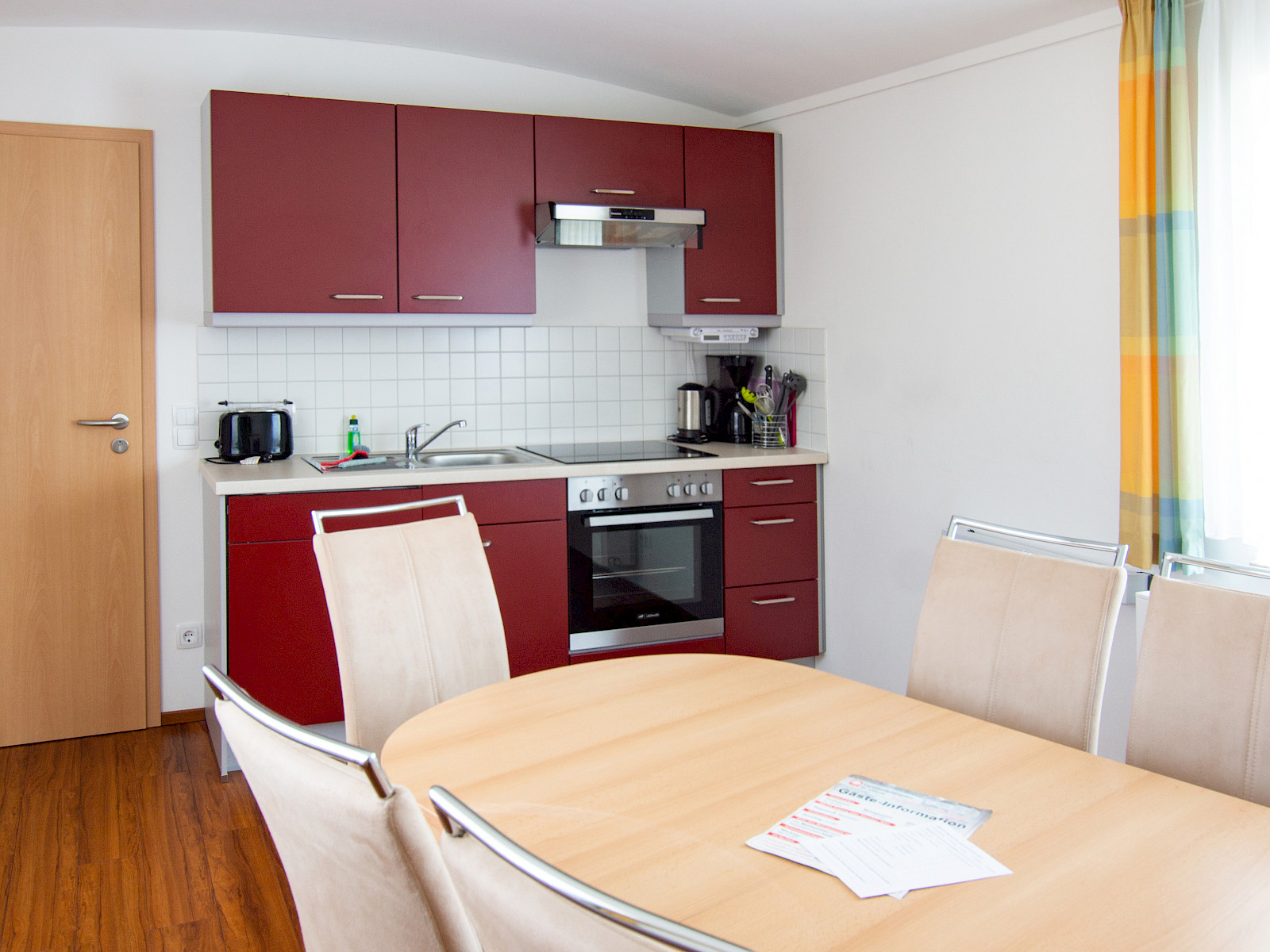 - Küchenzeile mit Herd, Backofen und Kühlschrank